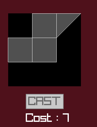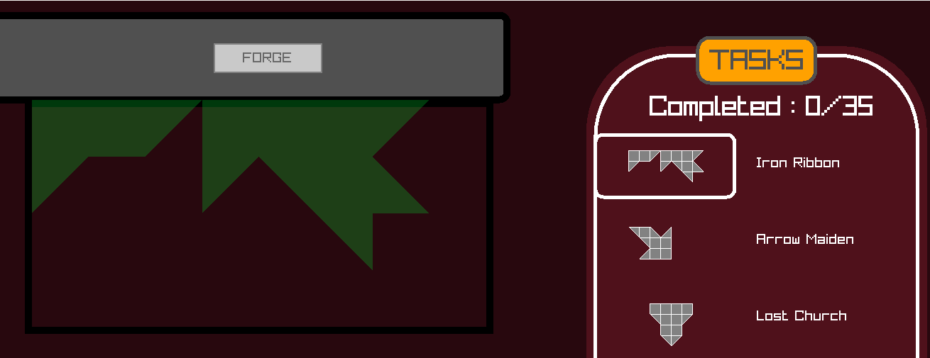 - The casting mold : create new 3x3 shapes by repeatedly click on its cells. (You can't spend less than 6 liquid iron drops to cast a shape!)